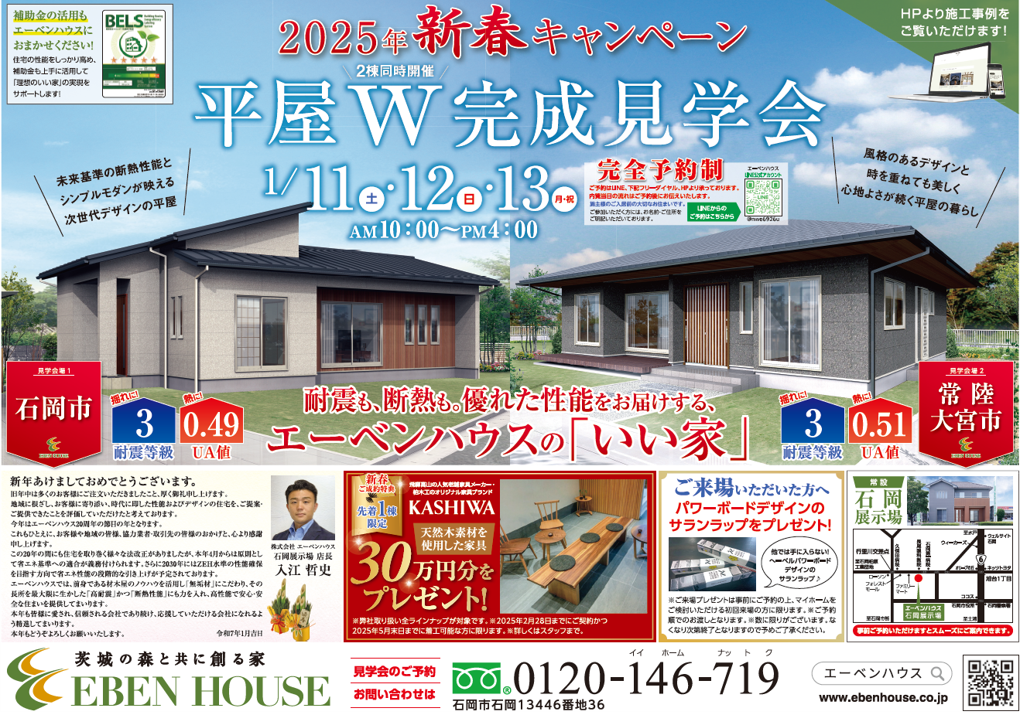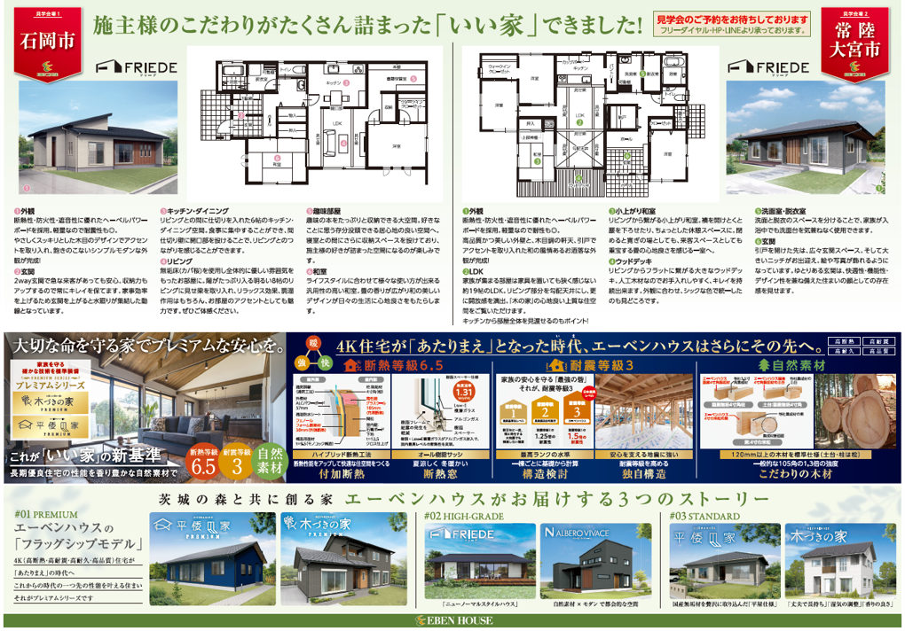 石岡市と常陸大宮市で耐震等級3・断熱等級5仕様のリアルサイズの実邸の平屋です!!