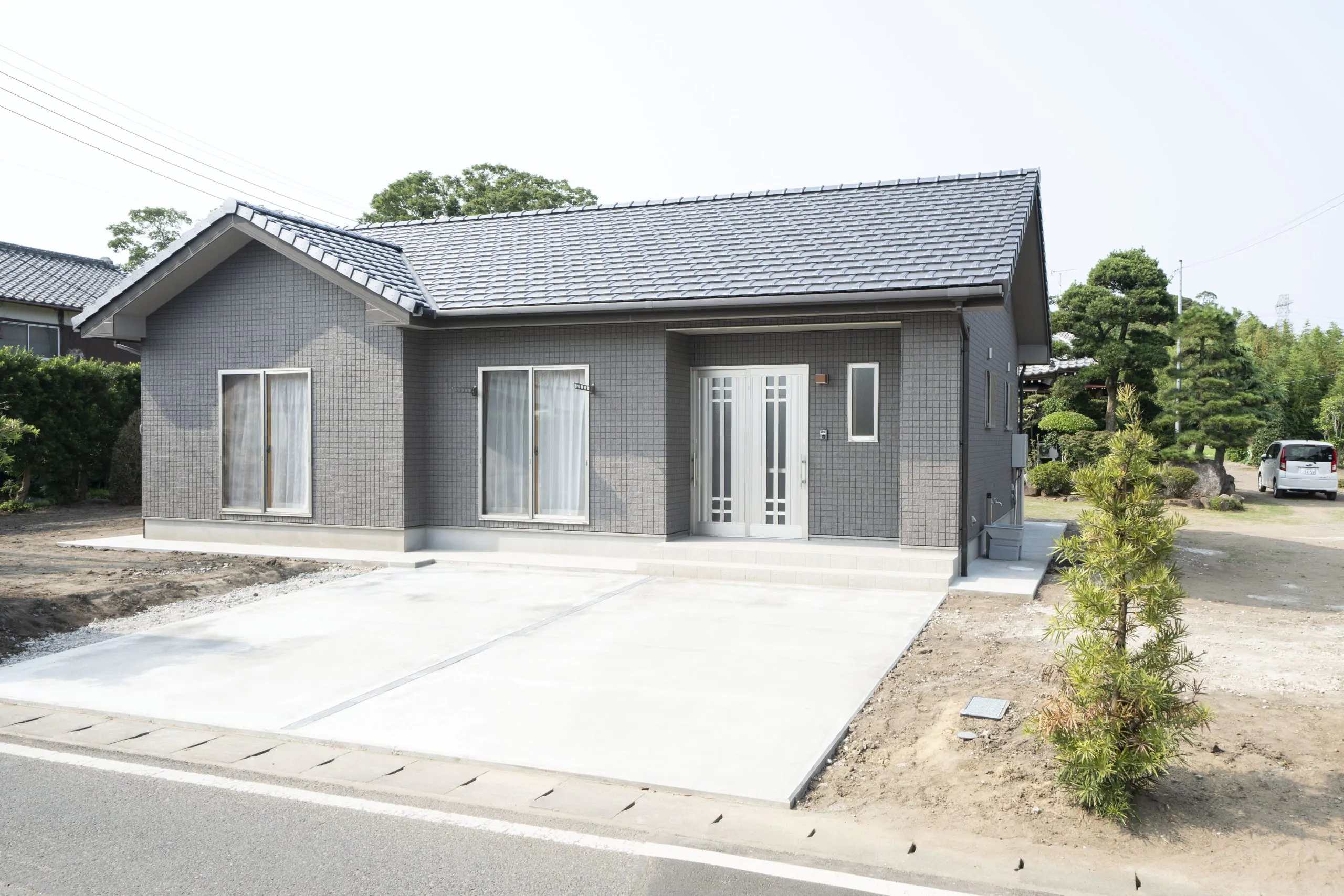 シックな色合いでシンプルにまとめた外観はいつまでも飽きることなく落ち着いた空間を提供してれます。自然素材をたっぷり使用した構造体、床材にも惜しみなく無垢材を使用したことで夏は涼しく、冬は暖かく、木の良い香りも愉しめる家になりました。