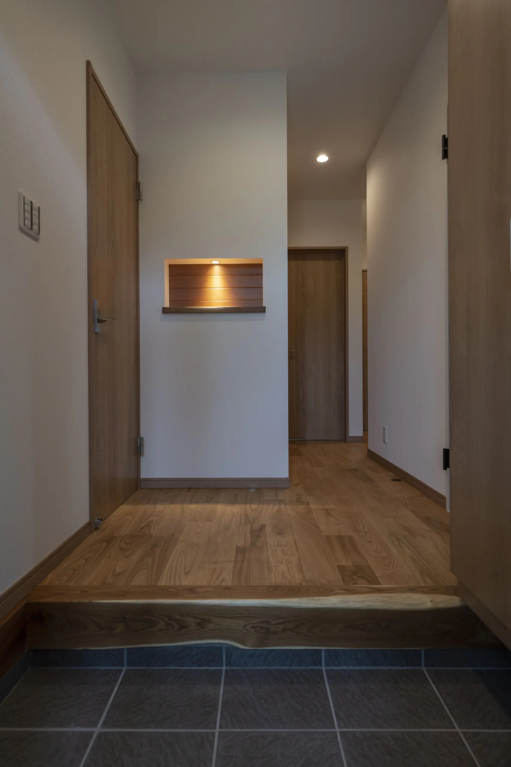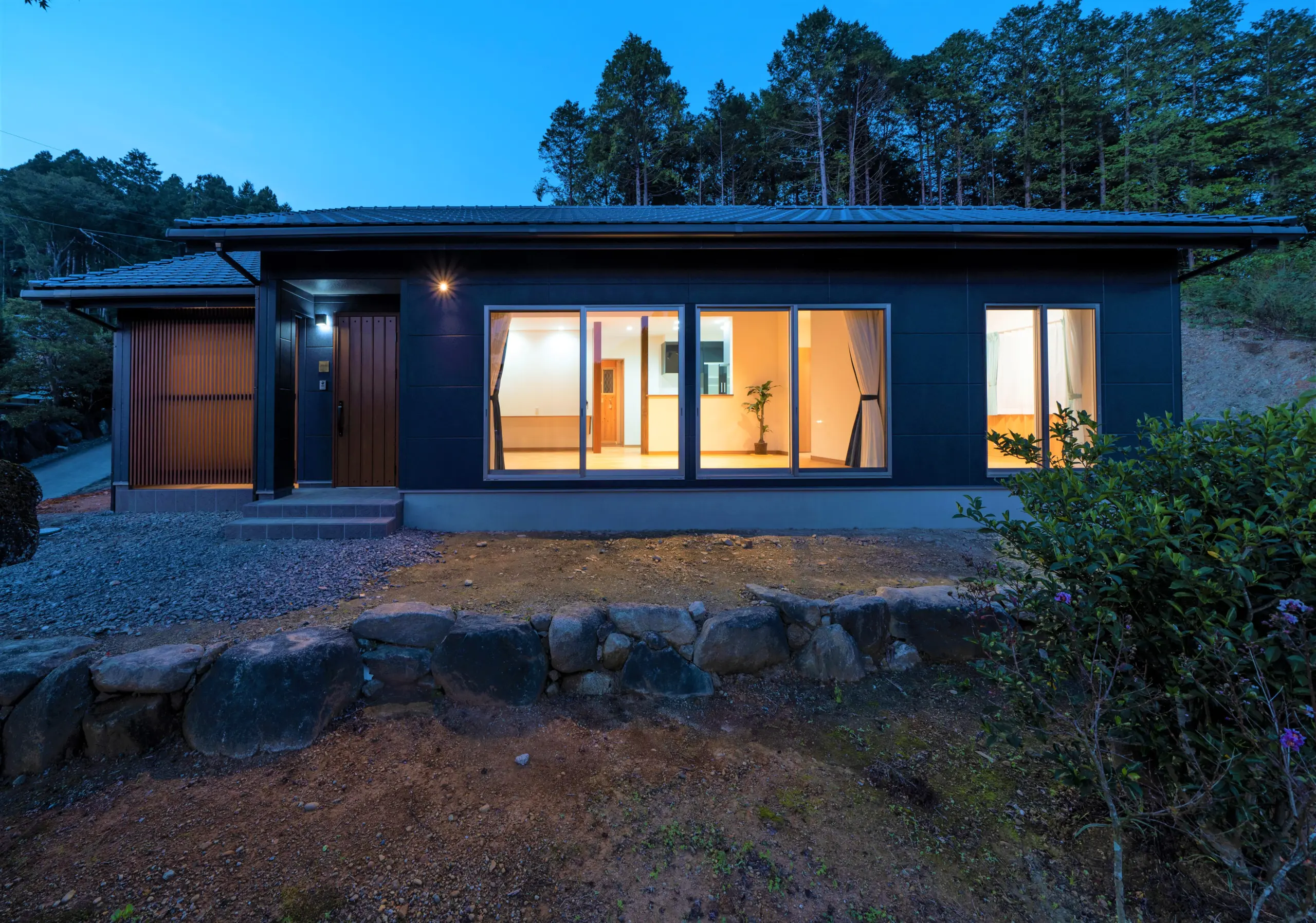 外観は、統一感のあるどこか懐かしさを感じます。大自然の緑に囲まれ調和した和モダンな住まいは自然素材の香りに包まれ、心も身体も癒されます