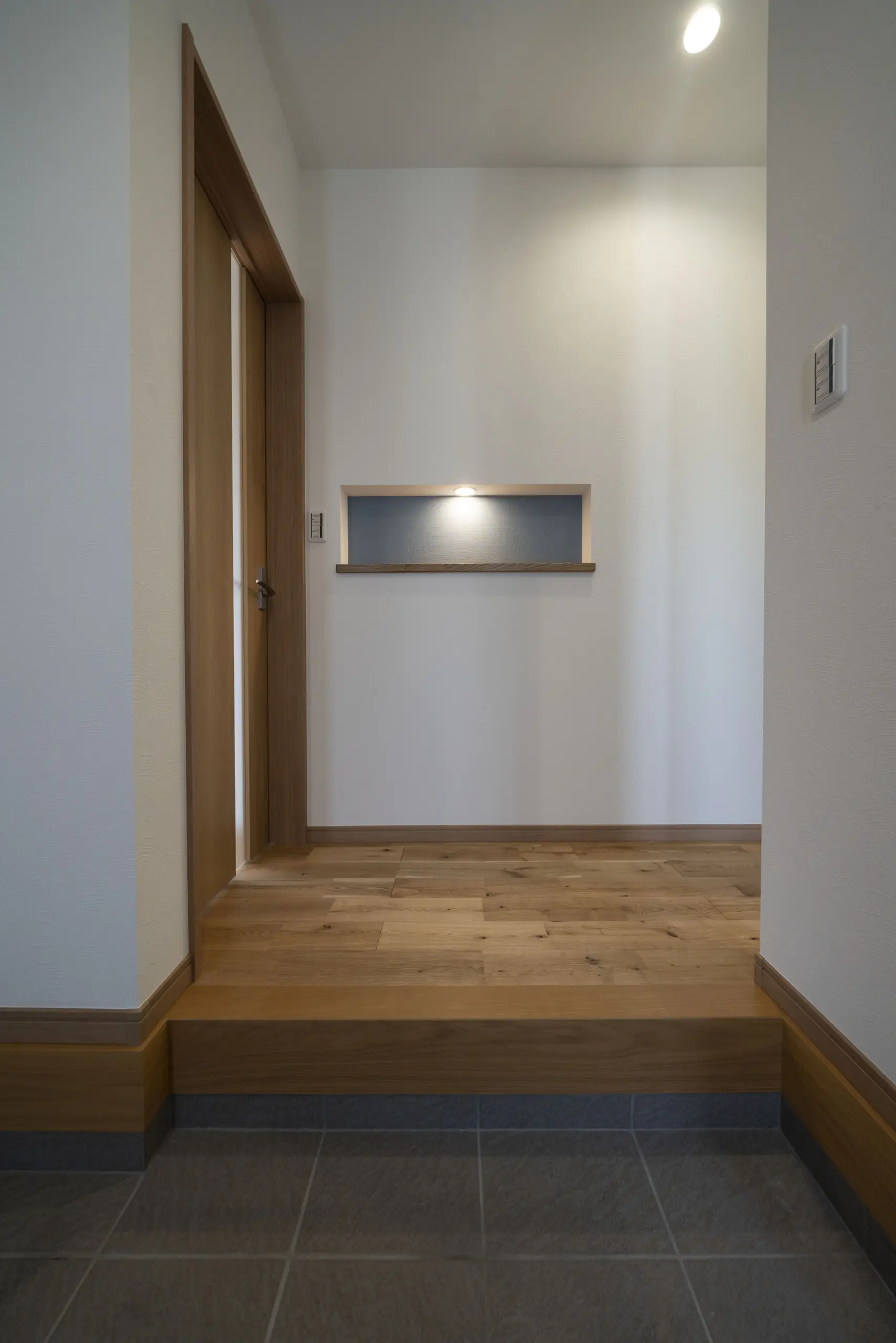 こちらは二世帯住宅になっており、アクセントで木目調の外壁を取り入れました。
