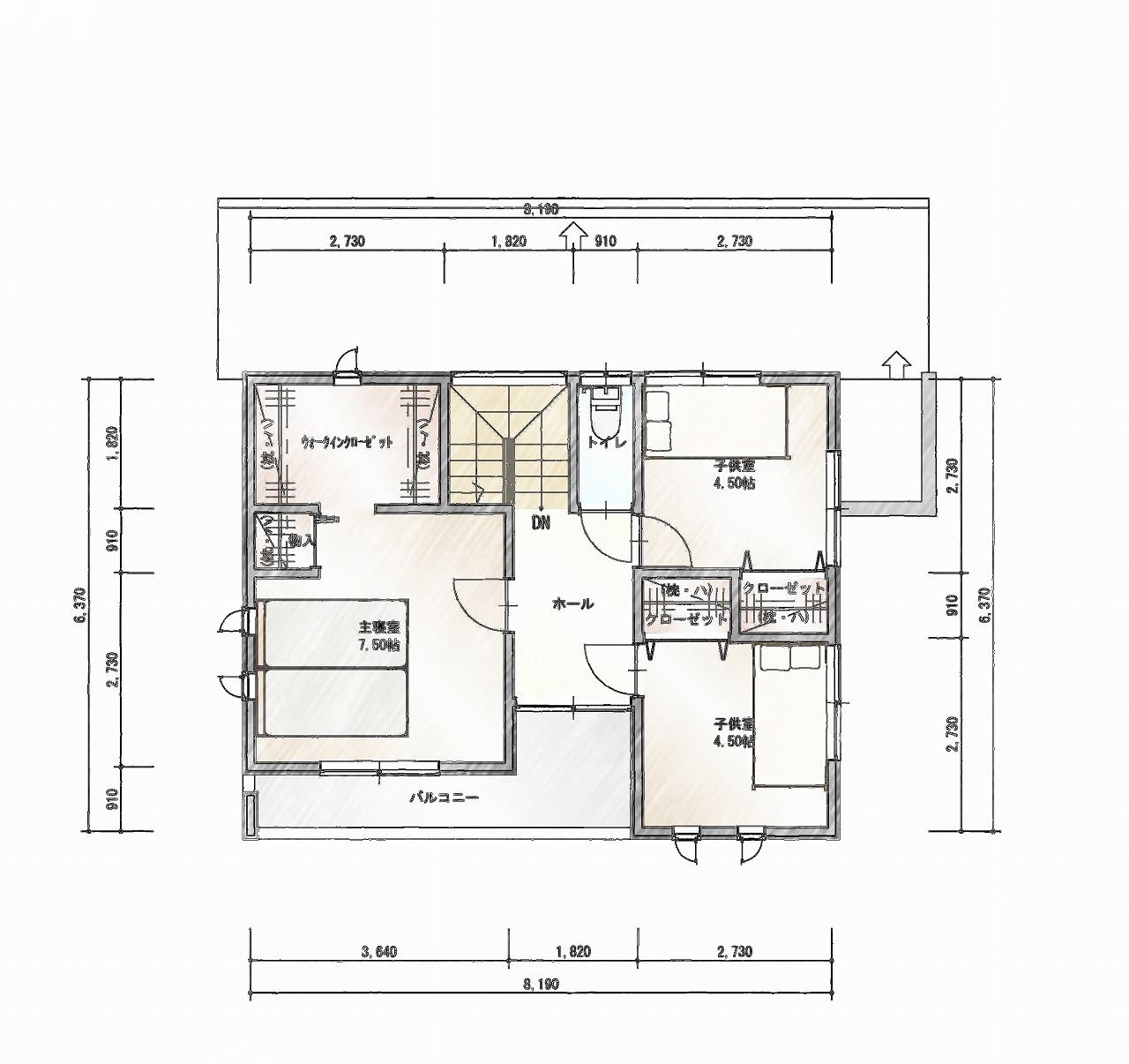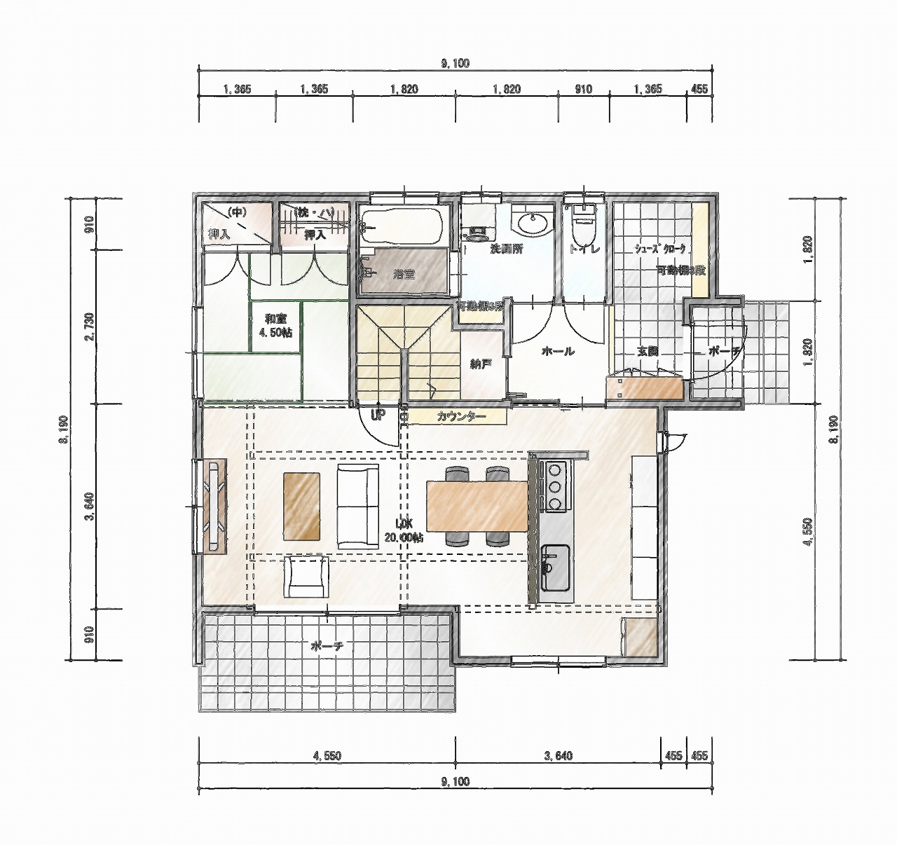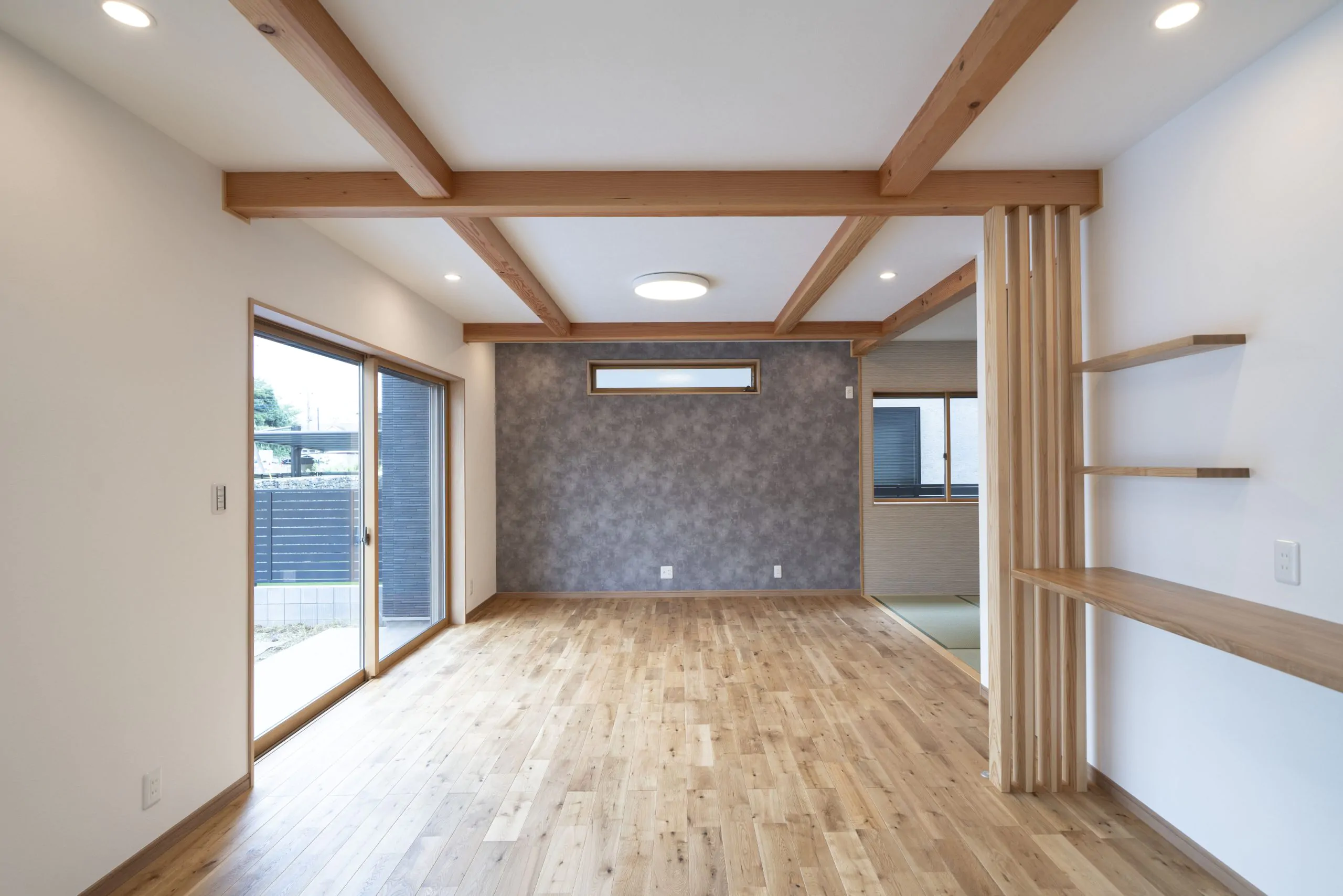 床材には十分な強度と耐久性を持ち、無垢フローリングの定番人気を誇るナラ材を使用しています。またたくさんの日差しが入るよう大きい窓を設置し暖かい家を実現。