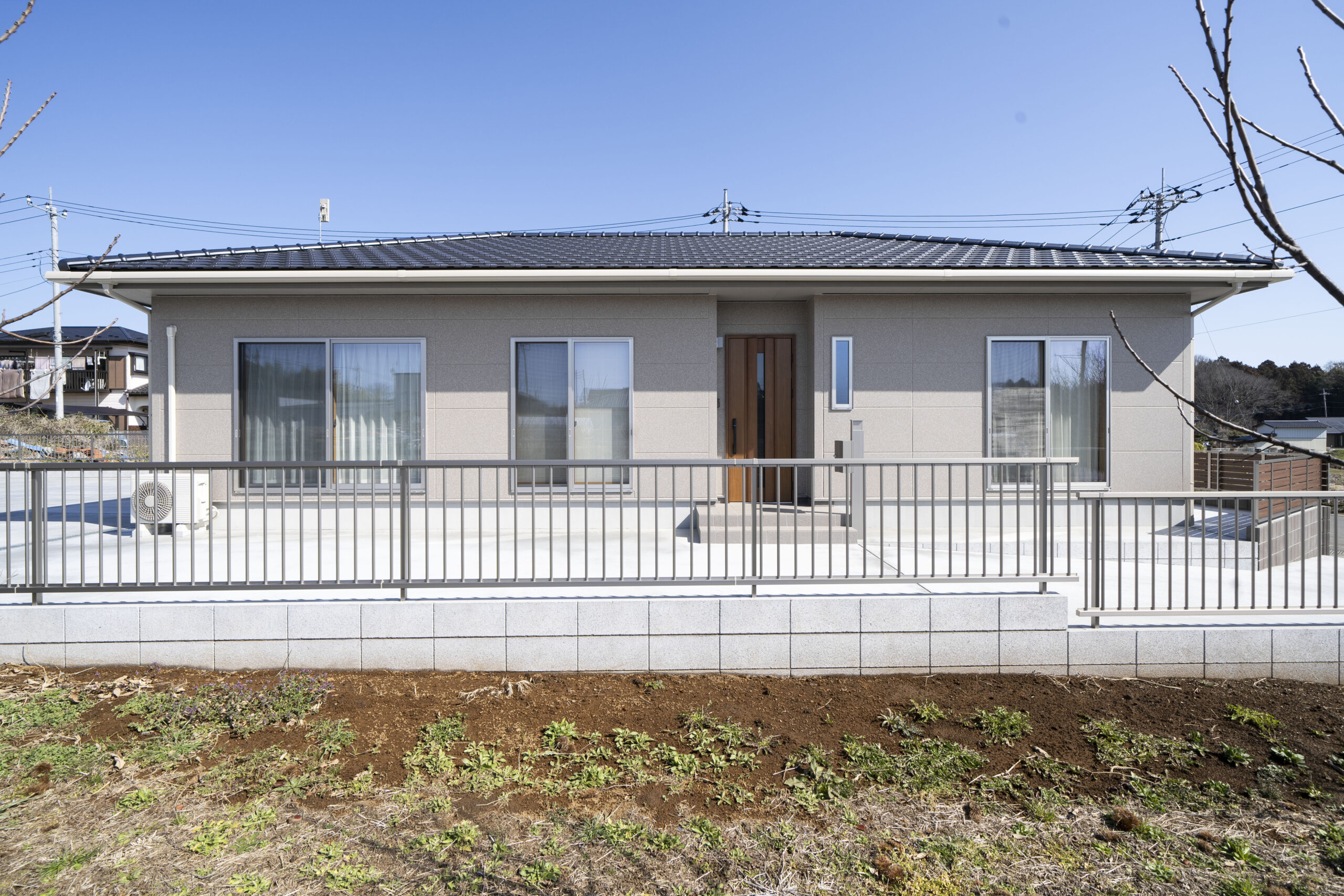 定年を迎えたセカンドライフの家づくり。大きな寄棟と外壁にはへーベルパワーボードを採用し落ち着きのある外観に。へーベルパワーボードとは耐久性と断熱性に非常に優れています。また内部の気泡により遮音性に優れており、外部の騒音を抑え日々の生活を快適に過ごせます。