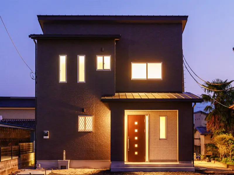 現代的なデザインと直線的でシンプルフォルムの2階建て