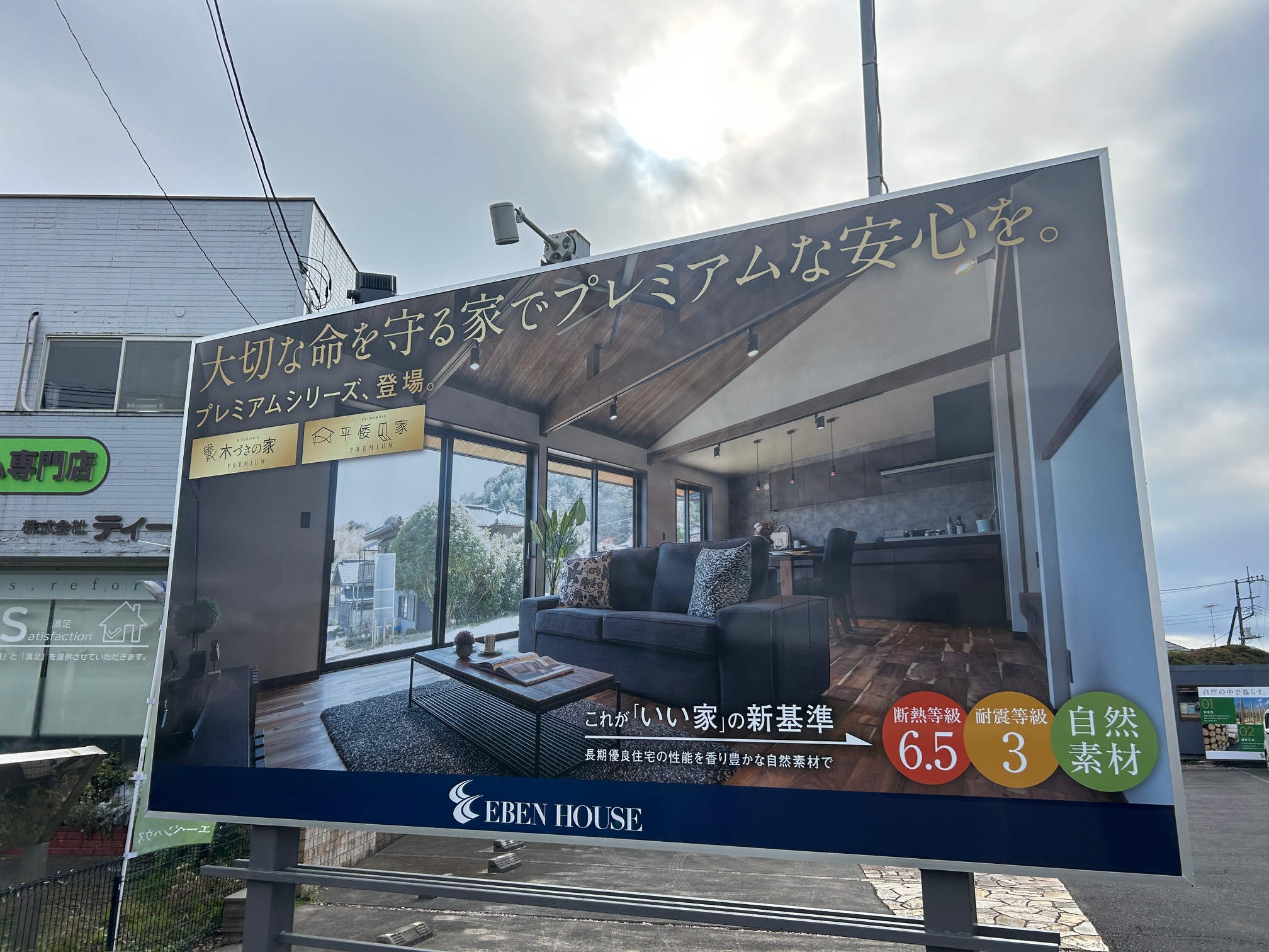 年数も経過し紫外線で劣化していたので、今年に発表した新商品プレミアムシリーズの高性能を謳った看板に新調しました!
