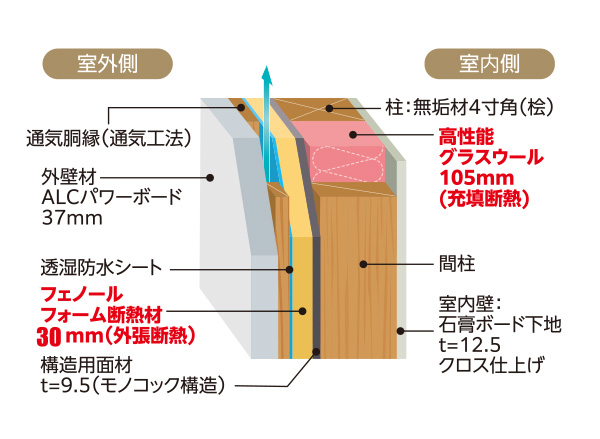• 壁断熱:ハイブリッド断熱